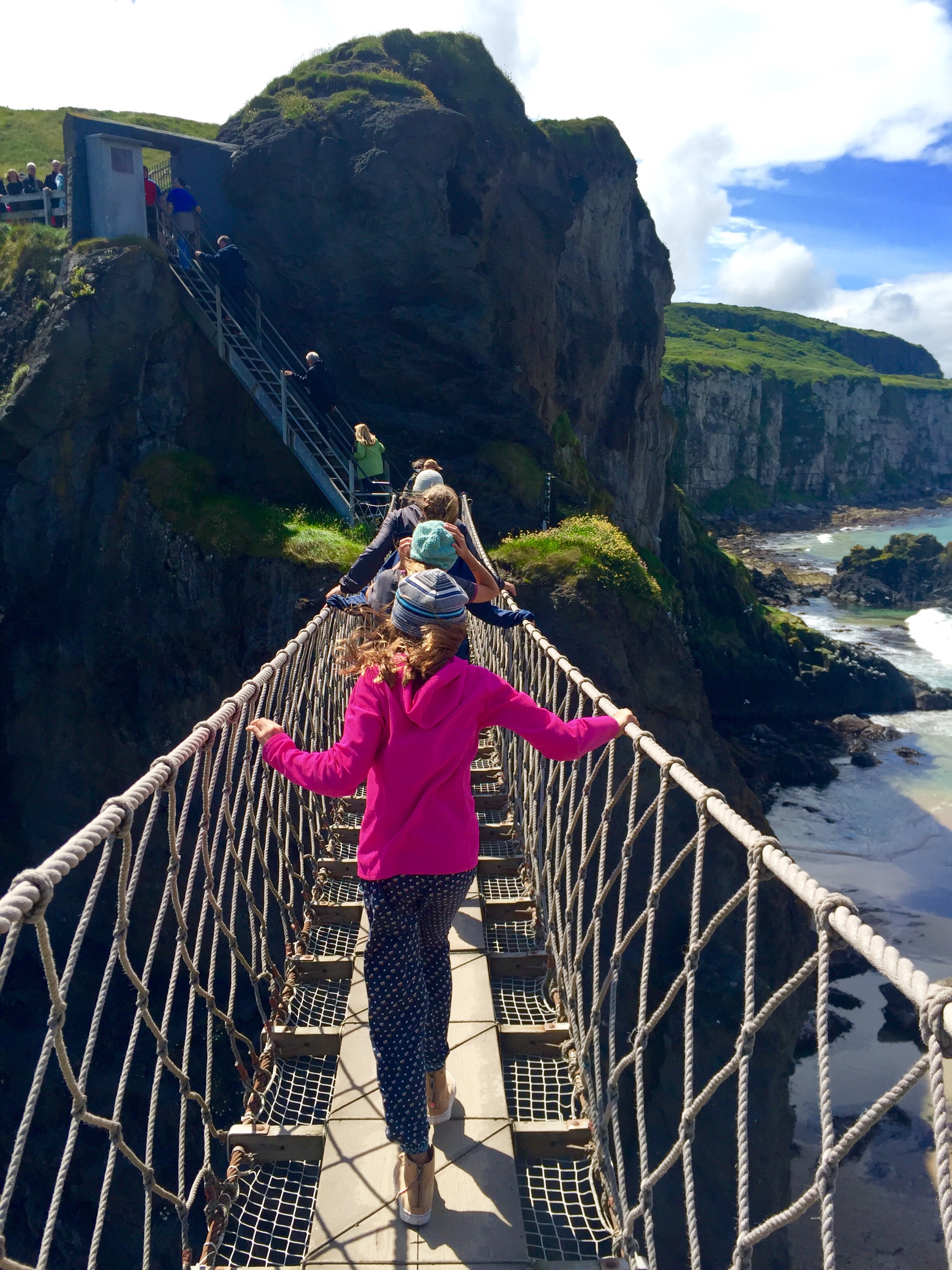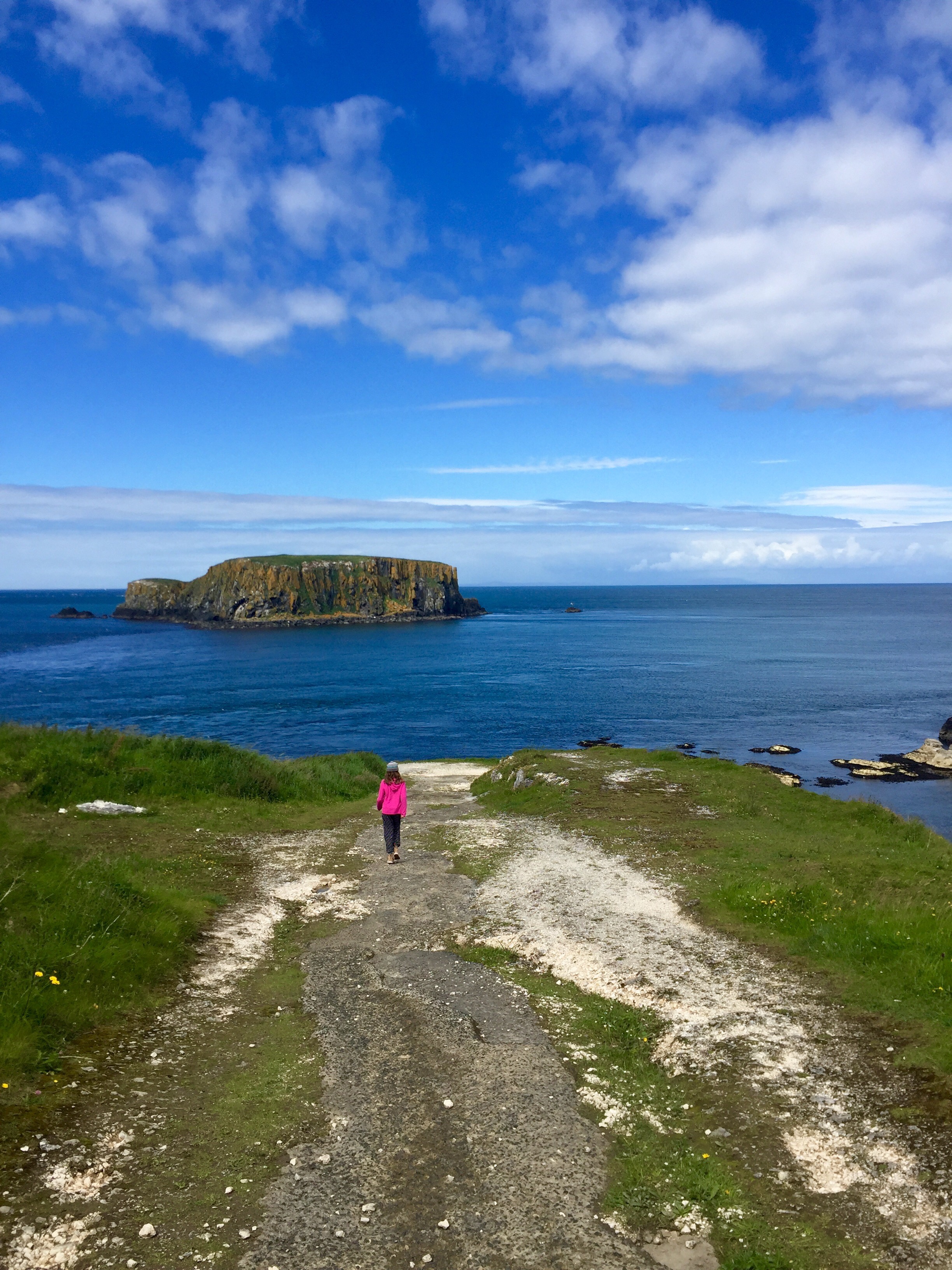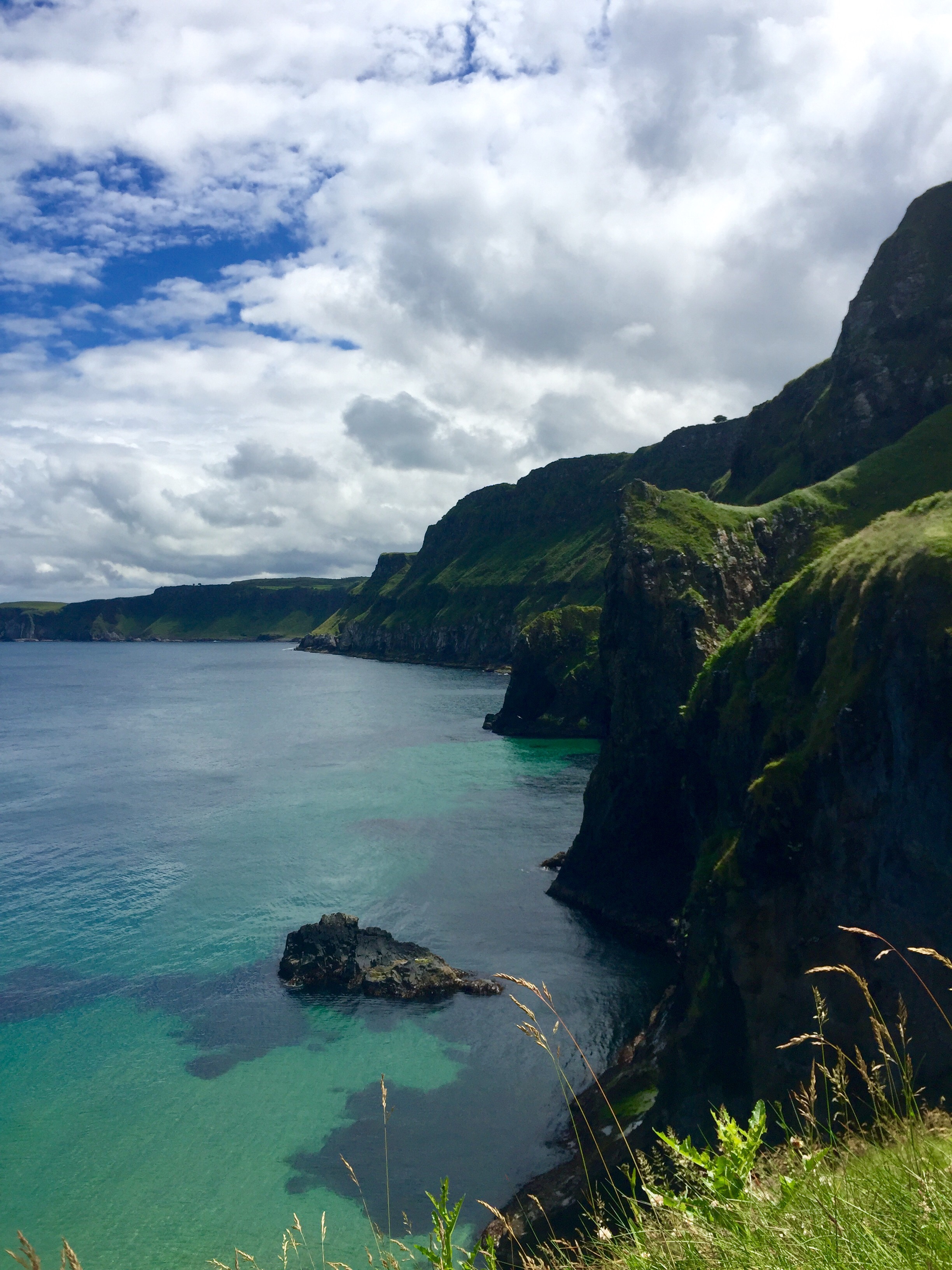 So I know that I have already talked about Northern Ireland but… You have only heard half of the story! The coast was beautiful, my family and I went to three places. First, we went to the Giant’s Causeway. It was a long and interesting trip, It was so cool we got to experience it. All the rocks and the shapes in the rocks, were formed all by themselves! We even got to sit in a rock shaped like a boot, and the wishing chair, it’s made out of rocks. Second, my family and I went to a bridge on my parents 19 wedding anniversary. The bridge was not at all long but the views from the hill were just un-explainable. Being up there on that lovely hill or slope if you will it made me realize how lucky and privileged I am I mean I already knew I was lucky but now I understand the work my parents put into these trips. It also helped me figure out that my dad needs less slippery shoes, he fell like three times! Last but not least, the beach, I don’t know what it was called but it was so cool. It was mostly rocks, driftwood, and sticks of bamboo. There was one little circle of water that wasn’t covered in seaweed, but I was the only one who stood in it, my family was being such wimps, just kidding. While we were there we meet this cute little dog that ran next to our car all the way down the hill to the beach, she was female, was tan and white , and had pretty brown eyes. In my opinion she liked me the most! We I  mean I named her Serenity because she was so calm but still very playful. It was a great, calm, and playful day, I will never forget it!