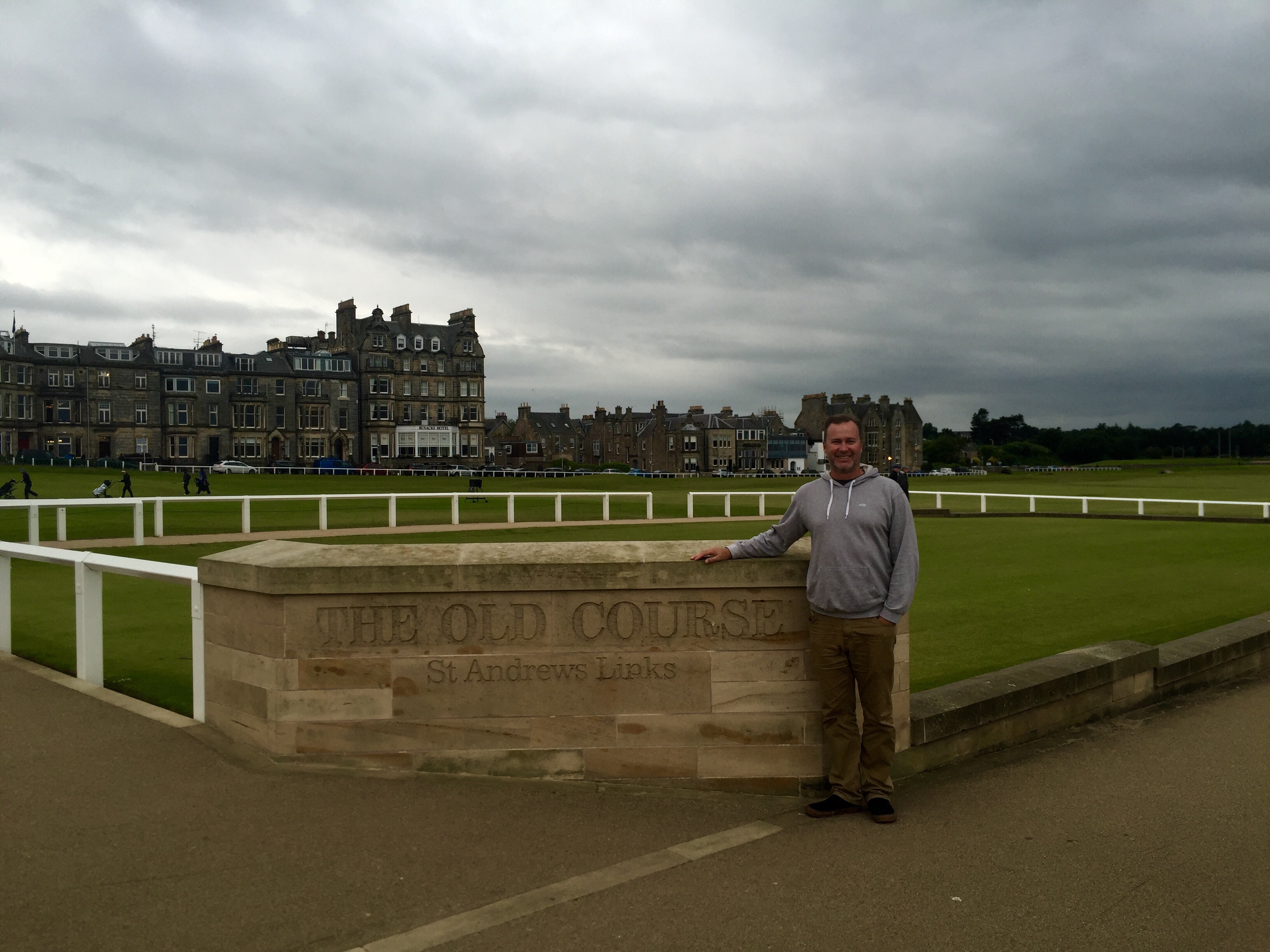 in front of the famous bridge on the Old Course