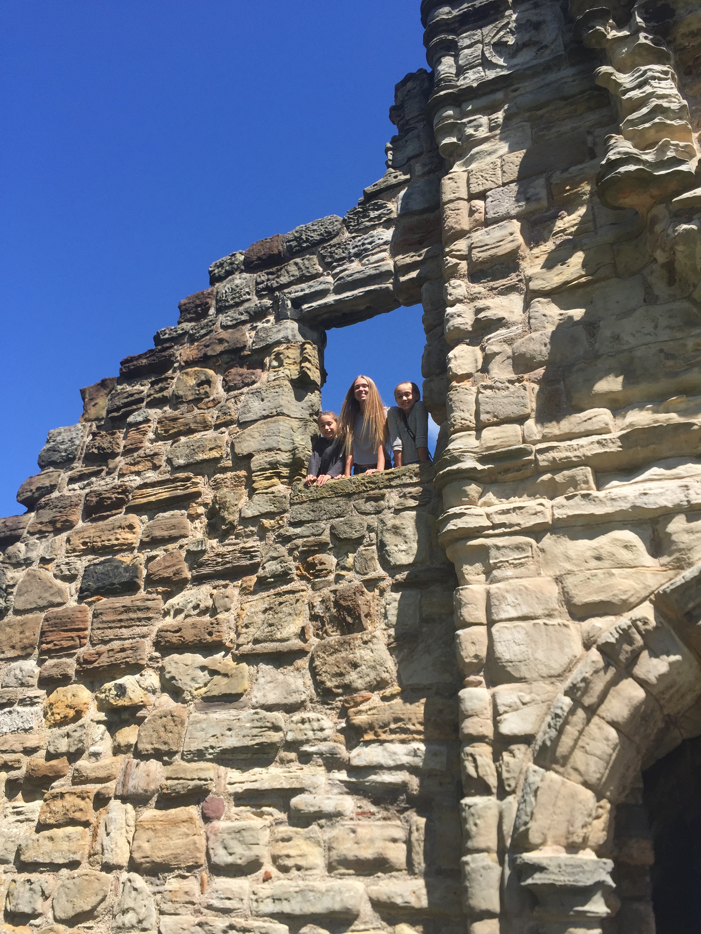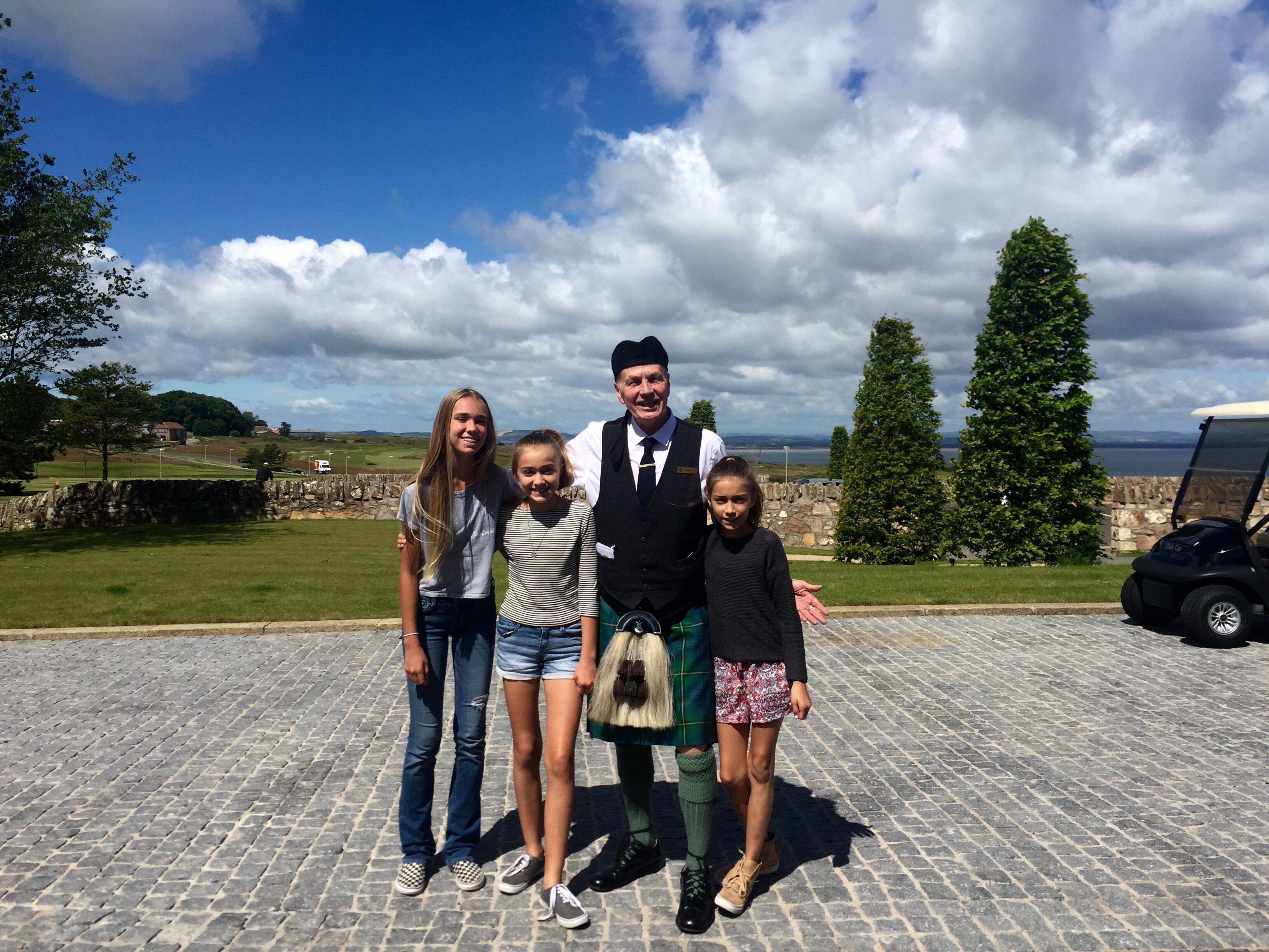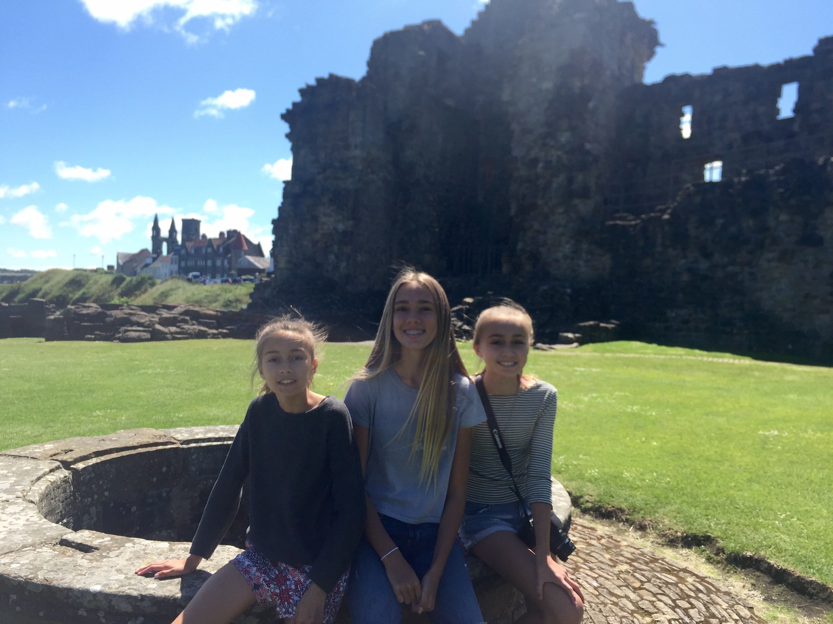 Hello! So, in Scotland we went to so many places and by places I mean castles. The first castle was Sterling castle it was so big and had amazing views. There was a little tunnel underground that was really small but so risky and fun. Second, the St. Andrews castle, which was 10 minutes away from where we were staying (at the Fairmount)! When we were at St. Andrews we visited the golf course and played two rounds on the Old Course (kids course).  It was pretty hard for me, because I’m not the one who golfs…thats Carmen.  On the first round I did really bad, I got a 22 while the rest of my family got in the teens.  My dad got to live his life long dream of playing on the St. Andrews golf course.  He had to get up at 5 am to just get a tee time…thats crazy!  Since he got to do that, he was so happy the rest of the trip!  My sisters and I did a lot of shopping, fought a little, and swam in the indoor pool!  One person who worked there was very strict, but I  kinda get it it mostly a hotel for adults. he still should know that rules will be broken if there are kids staying. He wouldn’t let me do anything! I couldn’t go in the hot tub, the exercise room, the steam room, and the sauna! I was so mad I wanted to yell at him, I mean dude I’m just a kid, cut me some slack. But, other than that I had a great time!