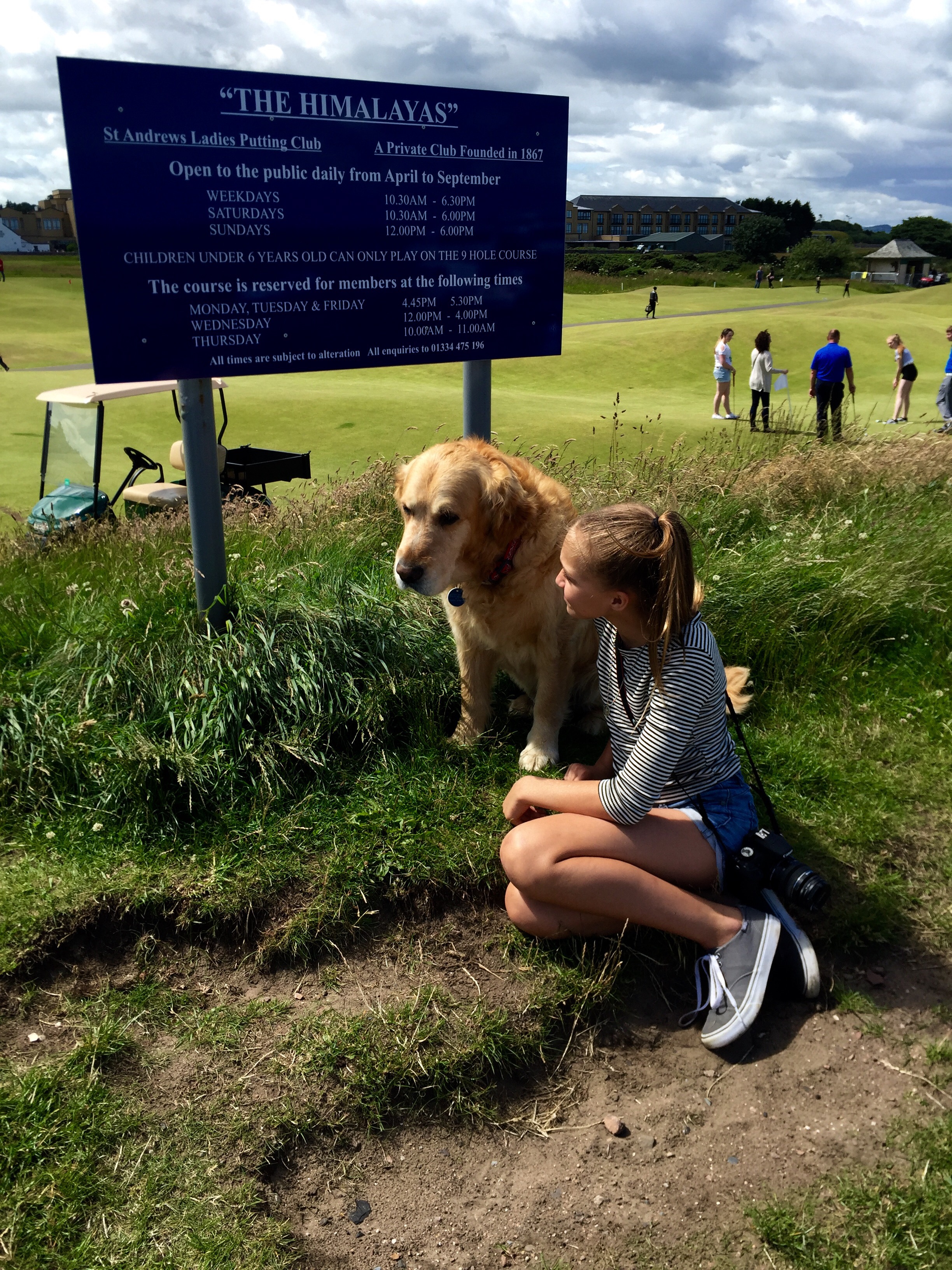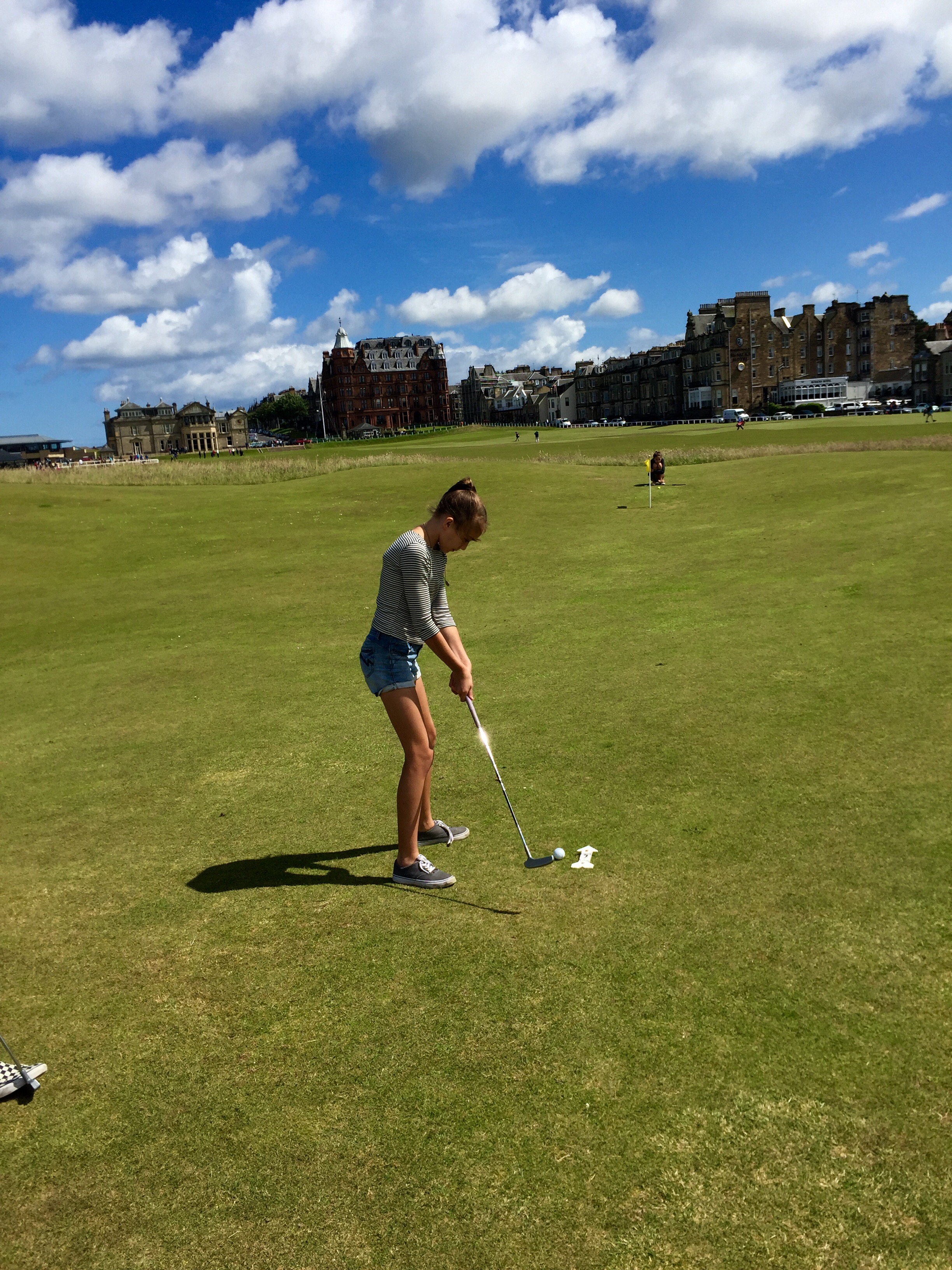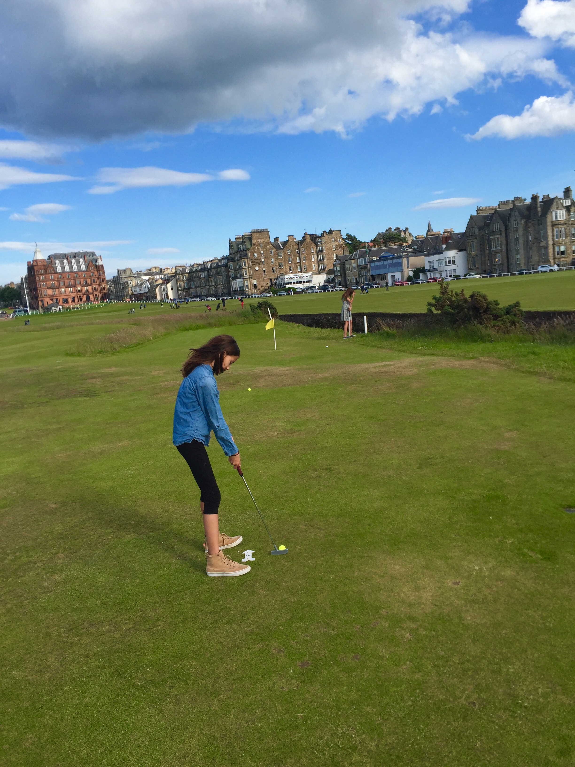 Hello! So, in Scotland we went to so many places and by places I mean castles. The first castle was Sterling castle it was so big and had amazing views. There was a little tunnel underground that was really small but so risky and fun. Second, the St. Andrews castle, which was 10 minutes away from where we were staying (at the Fairmount)! When we were at St. Andrews we visited the golf course and played two rounds on the Old Course (kids course).  It was pretty hard for me, because I’m not the one who golfs…thats Carmen.  On the first round I did really bad, I got a 22 while the rest of my family got in the teens.  My dad got to live his life long dream of playing on the St. Andrews golf course.  He had to get up at 5 am to just get a tee time…thats crazy!  Since he got to do that, he was so happy the rest of the trip!  My sisters and I did a lot of shopping, fought a little, and swam in the indoor pool!  One person who worked there was very strict, but I  kinda get it it mostly a hotel for adults. he still should know that rules will be broken if there are kids staying. He wouldn’t let me do anything! I couldn’t go in the hot tub, the exercise room, the steam room, and the sauna! I was so mad I wanted to yell at him, I mean dude I’m just a kid, cut me some slack. But, other than that I had a great time!