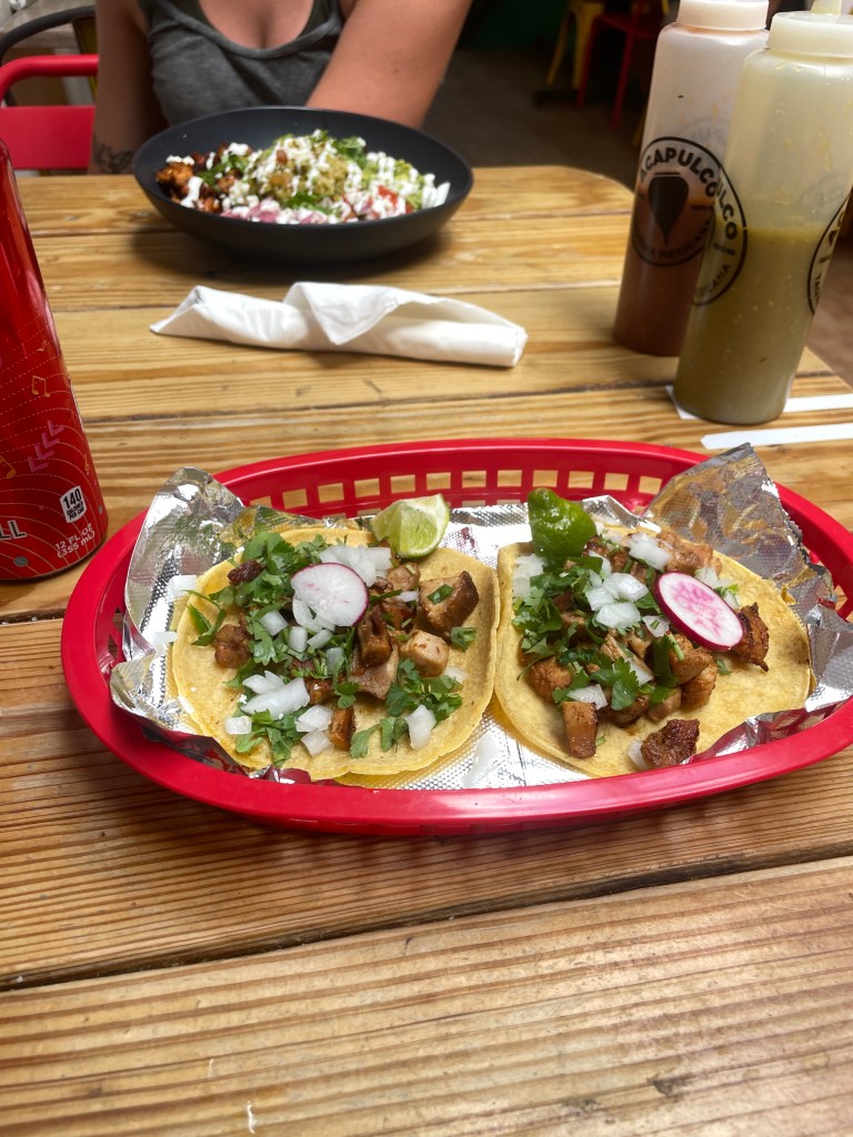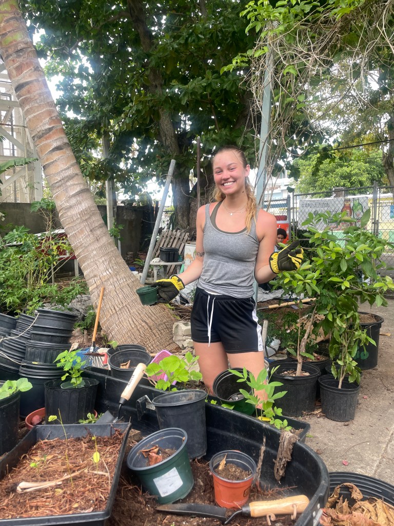 AHHH first day!! I’ve never experienced this kind of excitement. It was finally time, finally time to do what I came here for, and what I’d been planning for months. It feels so surreal that it’s actually here now. Belle and I got ready to be there by 10 am. Which by the way is great because we get our morning to do our own thing. I decided to go on my first run and oh my goodness, it is so hot!!! I have never been that slow in my life. But really I kind of self sabotaged by not drinking enough water beforehand. However although the heat was draining it was definitely one of the most beautiful runs I’d been on, I plan to do it most everyday. Anyways, the organization we are working at is called CRES. It’s a community based organization that works to restore native plants and resources as well as educate the surrounding neighborhoods. This organization started in 2014 and has now grown so much over the years connecting with volunteers from all over the country. I’m grateful to say that a woman runs the program. Her name is Yvette. She started this organization with her neighbors and friends, her mom even occasionally helps out too! She went to college here at the university in Puerto Rico and graduated with an anthropology and history degree. Currently she’s getting her masters in environmental studies, all while having 2 kids. She has already taught me so much and I’m looking forward to learning more. Today we got a full tour of the garden and learned what the program is all about as well as planted somethings around the garden. Today we also learned we’d get to harvest fresh honey at some point which I’ve always wanted to do so I’m super excited for that day. After volunteering Belle and I just spent the rest of our day at the beach. We decided to go out for dinner and try this place that we kept walking past on the way to our hostel called Acapulco. Incredible is all I can say, I got chicken street tacos and we shared an order of churros at the end, which I might add they were served with ice cream. If you know me you know I love ice cream and definitely churros. Perfect way to end our day. I can’t wait for tomorrow to see what we do!