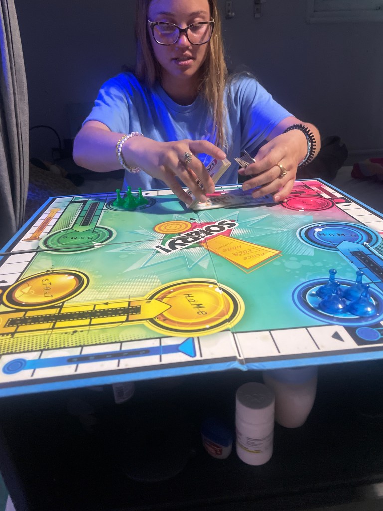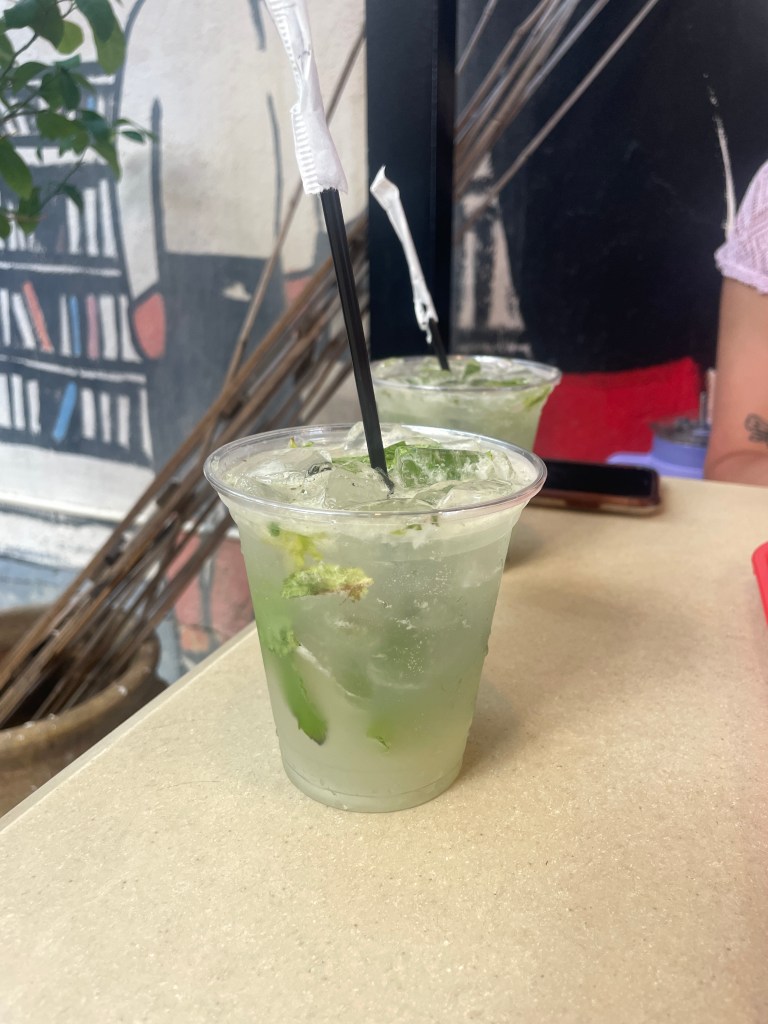 Another day down in Puerto Rico! Today was a very calm yet exciting day (I know that makes no sense). Today I went on my run and rushed to get ready for volunteering. We worked in the garden again today just doing simple watering and planting because of how hot it was there wasn’t much to do rather than try to keep the plants as hydrated as possible. After volunteering, as always Belle and I headed to the beach for a bit, it’s been so great having her here especially because we clicked immediately! Today was the day that I told her I’d finally sit down and watch Holes the old Disney movie from the 2000’s I believe. Multiple people have tried to get me to watch this forever but I was finally convinced. It’s about kids that get sent away to a camp for being bad or committing some sort of crime and everyday they’re forced to dig holes supposedly looking for something but they don’t know what. It sounded boring at first but I actually loved it. After the movie we really wanted to try this place on the street called La Prena which in Spanish means pregnant so the logo is a pregnant woman which is pretty funny. They sell arepas and on Thursday specifically they do a 2 for 1 mojito happy hour so we decided obviously we’d go today. It’s definitely a new favorite spot! Such good prices, they were so good, and mojitos are definitely a must! I did in fact spill about 3/4ths of mine all over my pants though…. not my proudest moment. We headed back to the hostel after dinner and found the board game sorry in the common area so we sat down and finished our night with that. 10/10 day 🙂