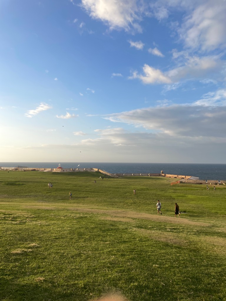 Week 2! Today was a special event for CRES, every year they do a beach cleanup with Corona Extra. They bring in a bunch of volunteers and give out t-shirts, beer, etc. CRES does the job of informing the volunteers why they’re doing this event, kind of leading the charge. We ended up picking up 514 pounds of trash just in a couple of hours. This was just another amazing example of what we can do for the community surrounding us if we come together. We spent about 3 hours cleaning up and then planting on the shoreline. After we finished we headed to this small hidden beach that Yvette showed us. It was so fun, the current was super strong today so we all were being pushed around by the waves laughing at each other getting tossed around. Belle and Nastassia even lifted me up to do a flip into the waves. One of our best beach days by far! Once we got back we all got ready to explore old San Juan! We shopped around little stores went, got some nachos, and took way too many pictures. There’s tons of history in old San Juan. For example, they have tons of architecture still preserved from the Spanish American War. They built forts such as Castillo de San Felipe del Morro to protect them from sea and land attacks during the war. It’s just a beautiful city in general. Colorful buildings all around with memorable stories behind many of them. We didn’t take a tour or anything special but we explored all we could and spoke to locals about parts of the history. Nastassia also knows a ton about Puerto Rico due to her having many friends who are Puerto Rican. Around sunset, we went to this hill that’s known for flying kites. We found this guy selling them on the street so we could participate. Although it was an awful kite we had so much fun doing the best we could trying to fly it. We were all getting tired after a while so we went back to the hostel so we could rest before going out again at night. A running joke for us three this whole week was the Rio soundtrack if you could believe that. I randomly started singing it one of the days and we all just caught on and now blurt it out constantly. We actually even watched the movie one of the nights which I forgot to mention. So anyways as we were getting ready we listened to the soundtrack together and other throwback songs from old Disney movies. We ended up going back to old San Juan to check out the nightlife. It was definitely more vibrant in color but last week we were definitely surrounded by more people. After about an hour or two we wanted to show Nastassia La Placita, so we went back over there. We had a great night just us girls dancing and walking around. One of the longest days we’ve had but also one of the most fun.