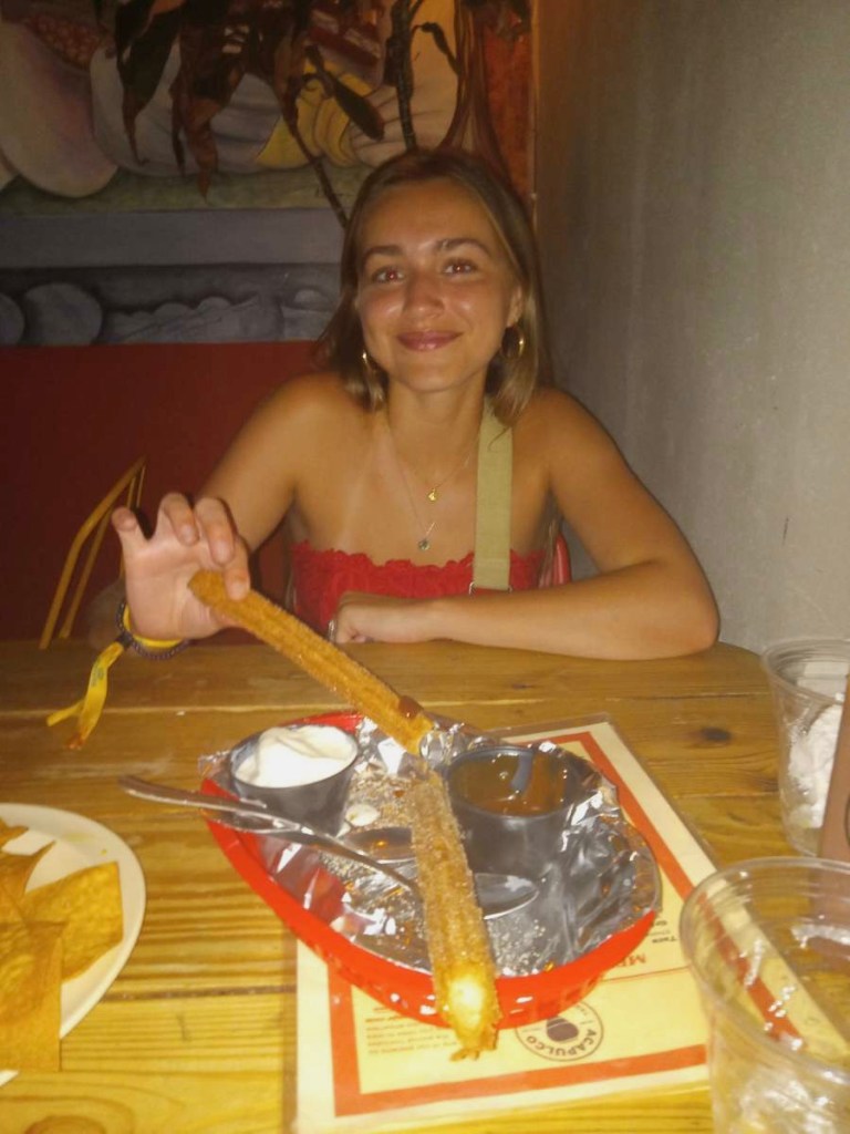 After our wonderful last night out, it was time for Nastassia to leave this morning. Belle and I had the rest of the day together but Nastassia’s had an 11 am flight so we all said goodbye. After she left Belle and I really had no plan for the day other than fixing her broken phone. She got water in her cracked screen so we needed a temporary solution. We both felt super muggy today so we took about an hour to walk to the store. She ended up having to buy a Samsung plan for a month… not ideal for her but at least she can actually talk to people now. After that we were right by the movie theater and we know they have great air conditioning (keep in mind it was like 93°) so on a whim we decided to see the little mermaid again! However since we didn’t know the next start time we had to wait for like an hour and a half. We ate some ice cream and took a nap in the lobby. Once again it was AMAZING! We sang the soundtrack the whole walk home. For our last activity before she had to leave we went back to Acapulco which was our first dinner together to split an order of their legendary churros! We had a great night but sadly it was time for her to leave. We called her uber and gave a long hug goodbye, I told them both before they left that I’d love for them to come to California sometime. Until then I’ll miss them a lot.